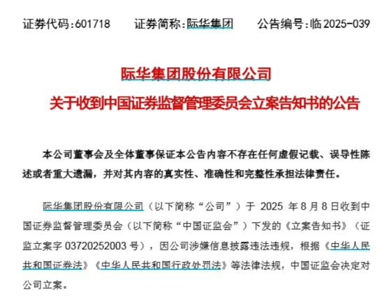 昨日晚间,际华集团(601718)发布公告称,公司收到证监会下发的《立案见告书》,因涉嫌信息清楚犯警违纪,证监会决定对际华集团立案。